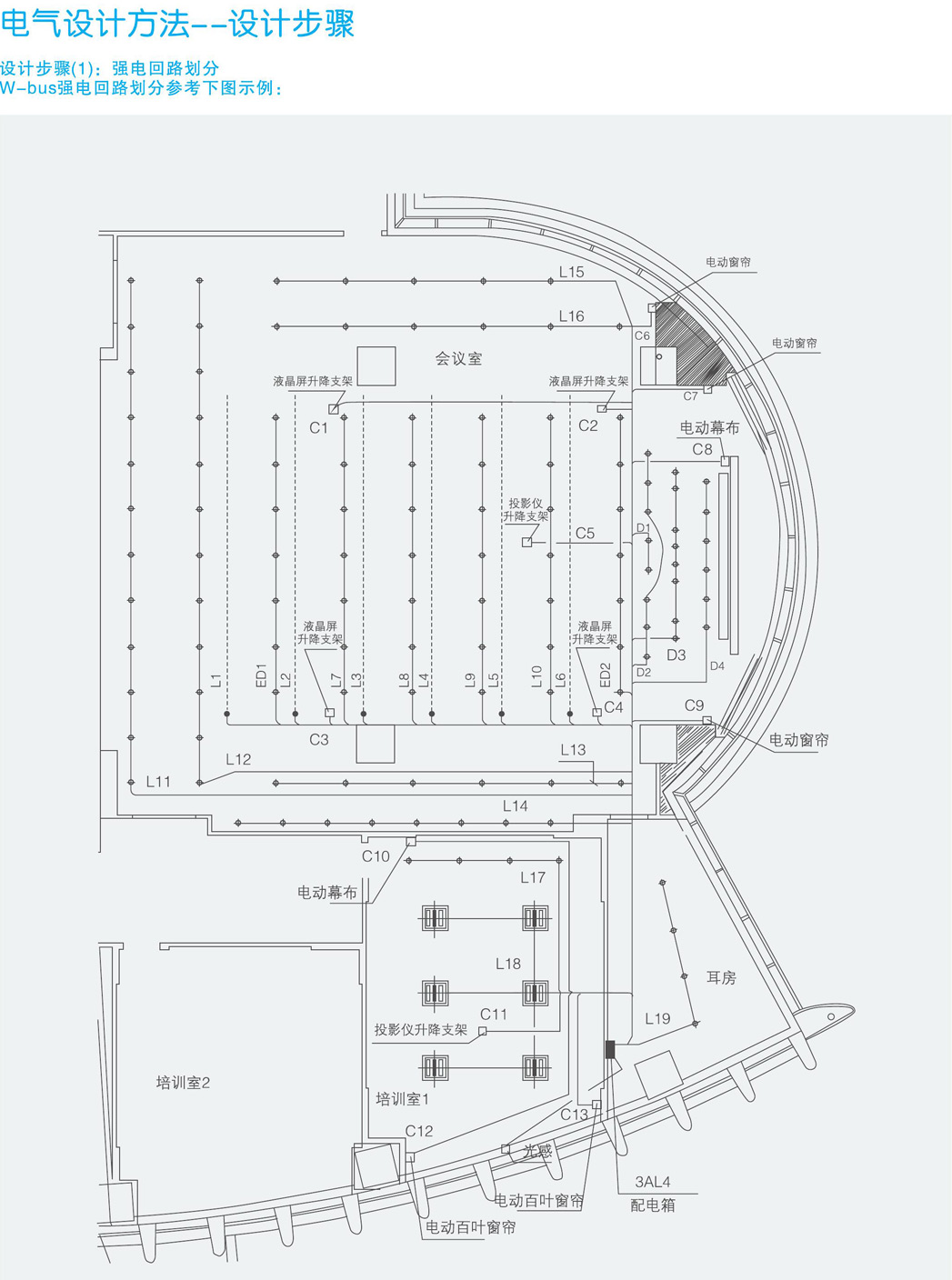 为了避免因供电设备故障引起的相邻照明回路同时掉电,建议将相邻的两个照明回路划分到不同的配电箱中。