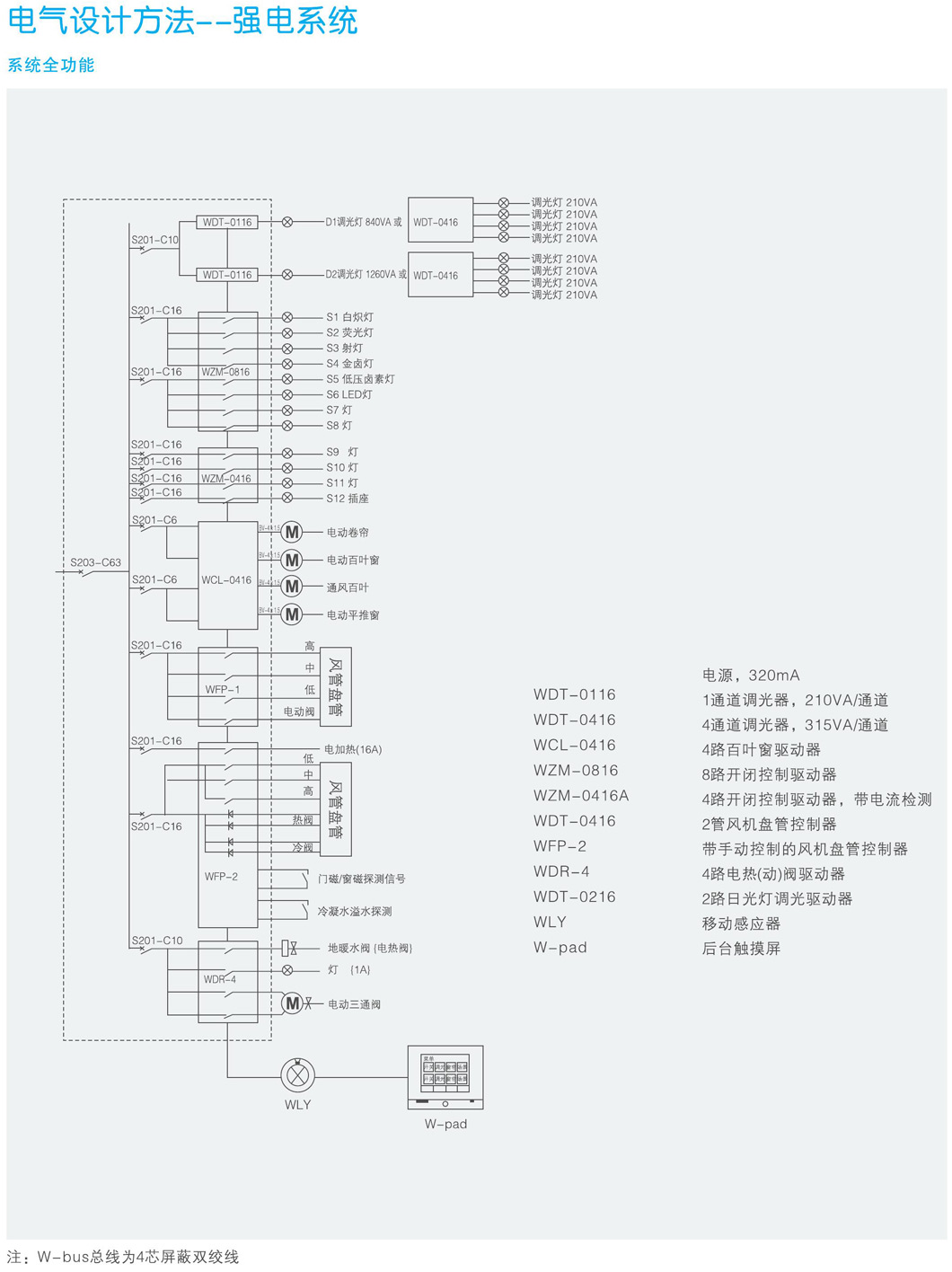 W-bus 智能建筑控制系统(以下简称:W-bus 系统)采用CAN总线标准,CAN采取汽车协议标准,多主多从,独立运作通讯。