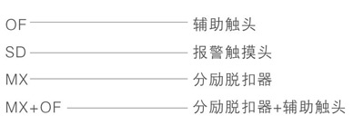 其中我公司MX OF辅助触点为国家实用新型专利,改进了以有源型和无源型合二为一,即可以电源直接进入分励脱扣器,又可以方便让辅助触点电源分励脱扣器统一或者分开。