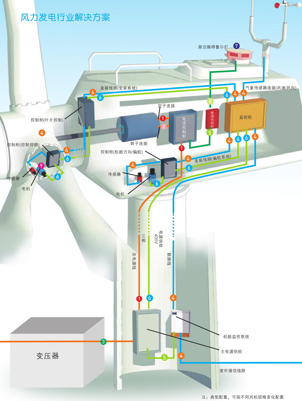 在雷电发生的情况下,风机设备会把直击雷电流以安全的方式泄放到大地,但其内部设备(发电机,控制单元,信号单元,传感器......)会受到强大感应电涌电压的冲击。即使在没有雷电的时候,电网电涌电压和操作过电压也会对这些设备造成持续影响,降低使用寿命。
