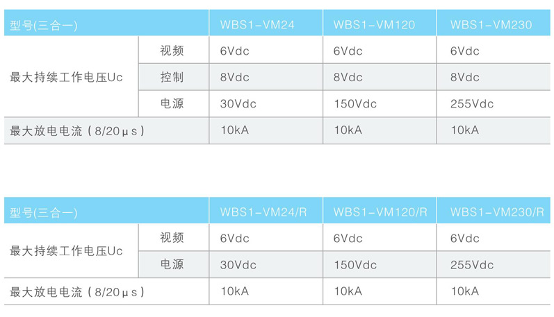 组合式摄像头电涌保护器WBS1-VM 系列交/直流监控系统电涌保护器为组合式一体化多功能电涌保护器,可以分别对监控系统的视频、电源、云台控制、网络传输线路进行防雷保护。