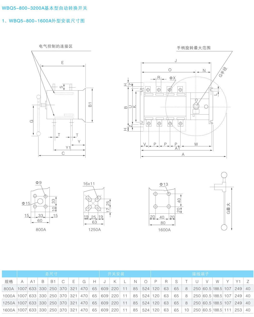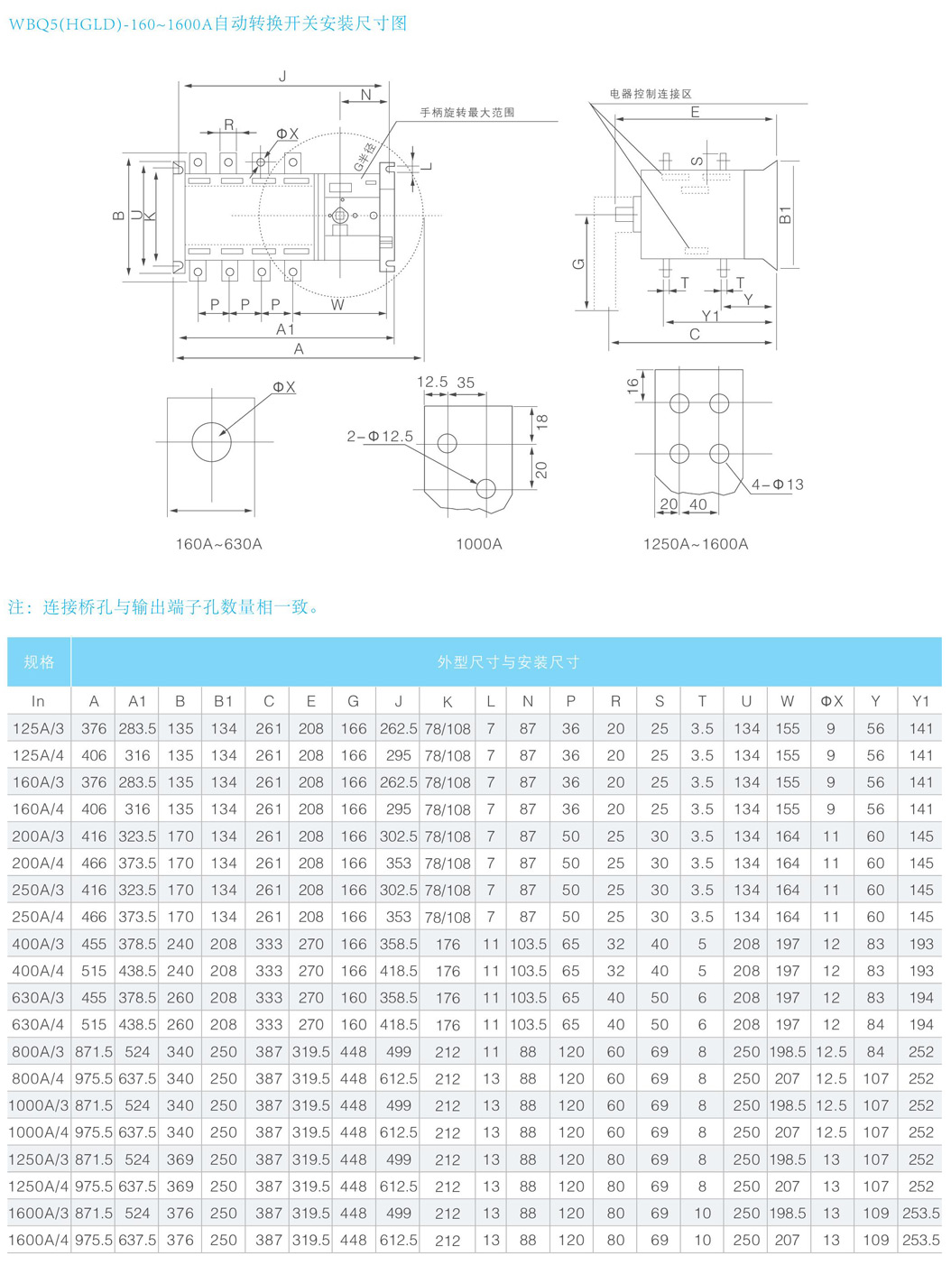 WBQ5(HGLD)双电源自动转换开关(ATSE),是集开关与逻辑控制于一体,无需外加控制器,真正实现机电一体化的自动转换开关,具有电压检测、频率检测、通讯接口、电气、机械互锁等功能,可实现自动、电动远程、紧急手动控制。