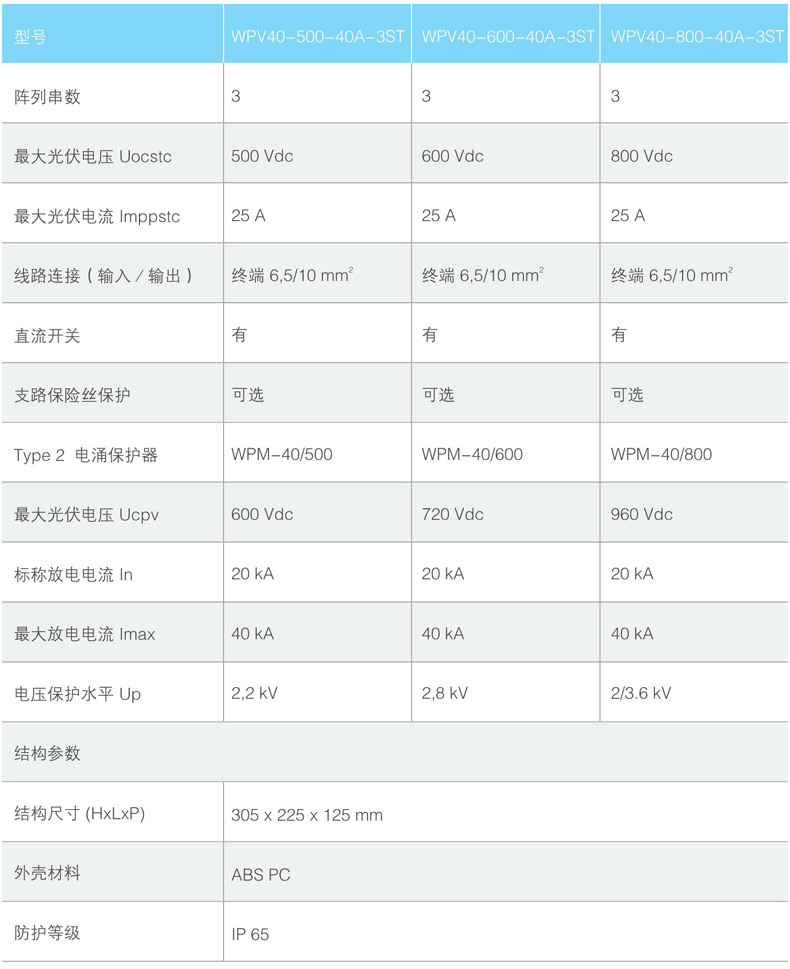WPV40-xxx-xxA-xST series DC 直流防雷箱