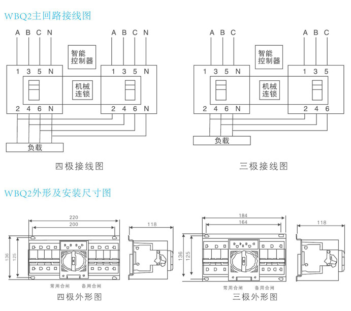 WBQ2-63型双电源自动转换开关电器(以下简称转换开关)适用于交流50H或60Hz,